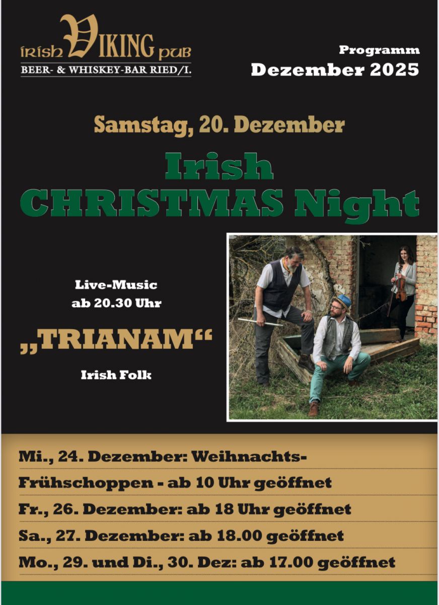 IRISH CHRISTMAS NIGHT "TRIANAM" Samstag,20.Dezember 2025